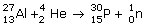Parmi ces nouveaux éléments, figure le phosphore radioactif formé dans l'aluminium, pour lequel Joliot donne la réaction de production: Dans le cas, par exemple, où l’aluminium irradié par les rayons alpha émet des neutrons, la règle précédente permet d’écrire la réaction de transmutation suivante :