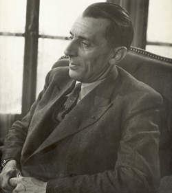 Figure 2 : Frédéric Joliot en 1947 dans son bureau du CEA (photographie droits réservés Association Curie-Joliot Curie ACJC).